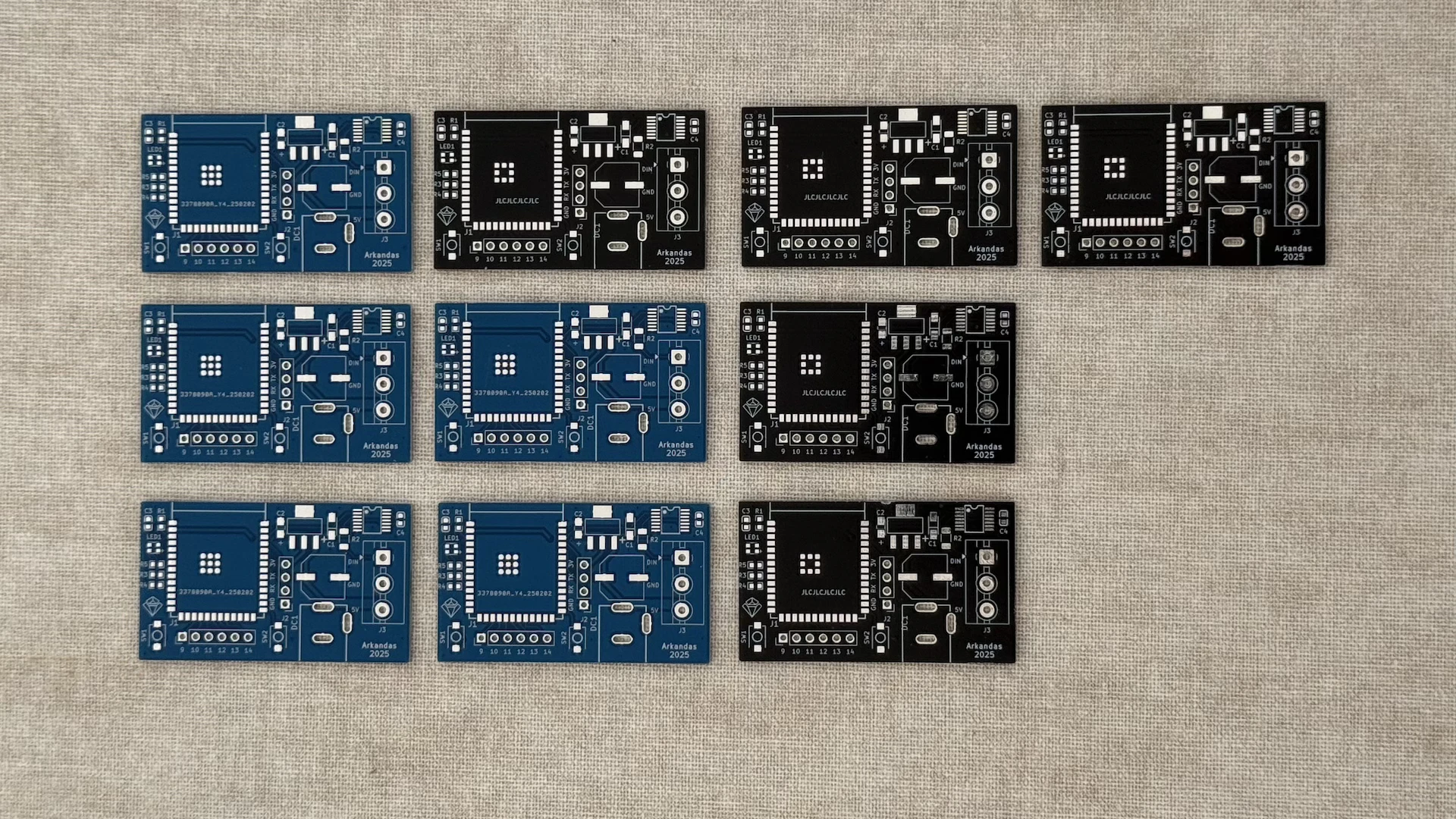I ordered the first batch of boards from JLCPCB. A set of five cost around €4, shipping included. Their quality has been solid so far. Every board I've received has worked fine, with delivery typically taking about two weeks on their cheapest shipping option.
