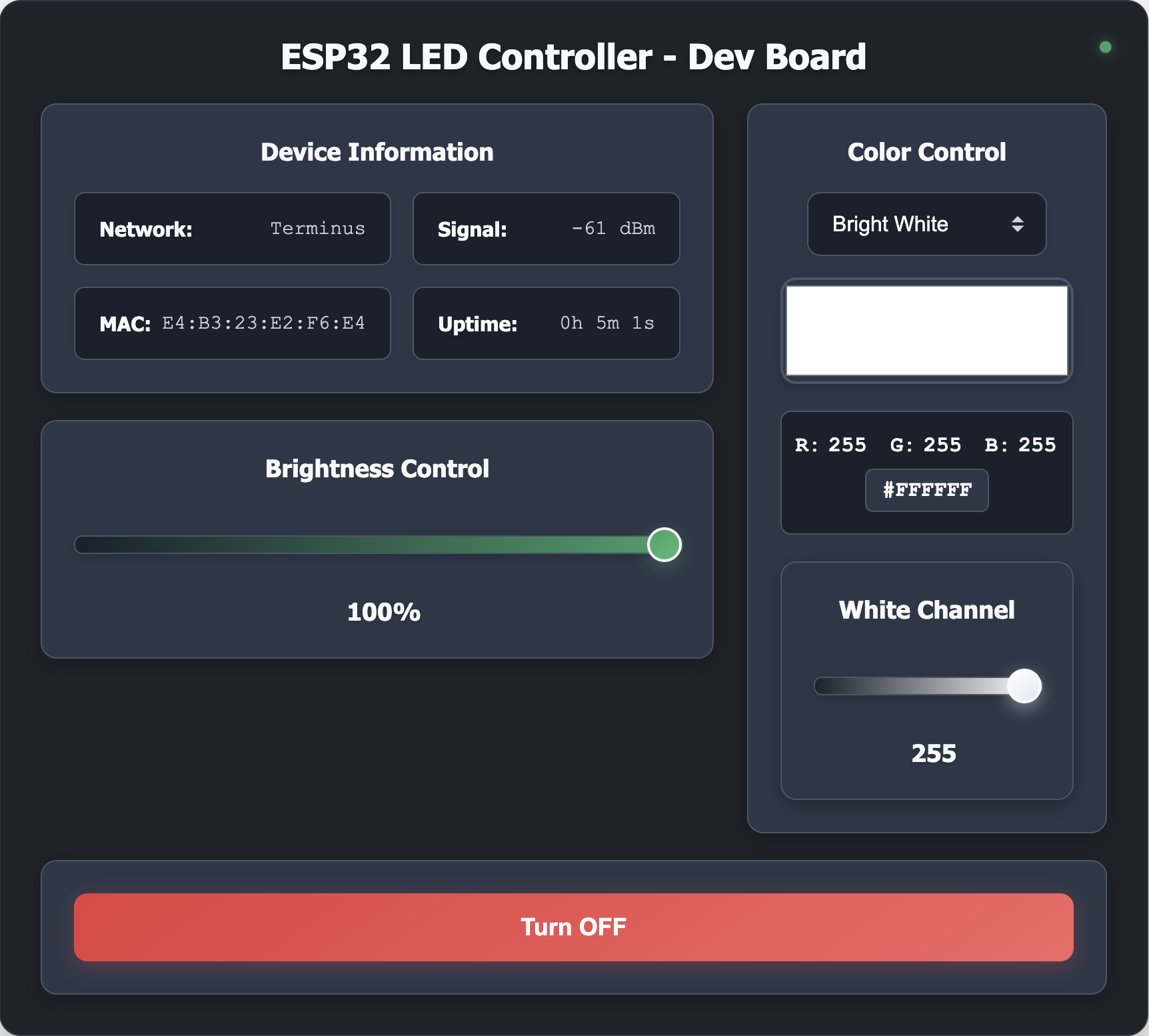 I already had some lamps around the house connected to Alexa for simple routines, like turning on gradually in the morning to wake me up and turning off again after a couple of hours. Everything was managed by an Echo Show 5, and I wanted the new LEDs to work with those routines too. I decided to build the controller myself so I could have a local web interface for direct control and avoid relying on third-party apps or cloud services as they tend to shut down, get deprecated, or start charging subscriptions sooner or later. I just wanted something dead simple that runs on the local network and doesn't need updates.